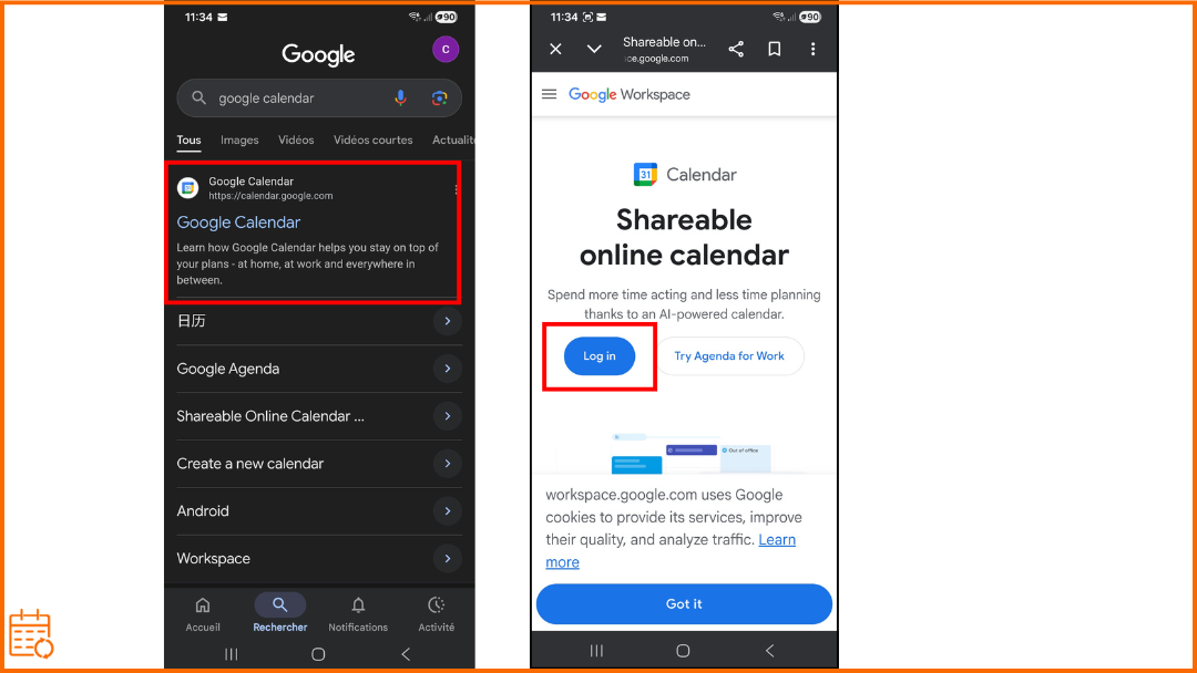 • With a Google account (recommended): even without a Gmail address, it’s possible to use another email (Outlook, Yahoo, etc.) to create a Google account. You can then share the calendar normally.